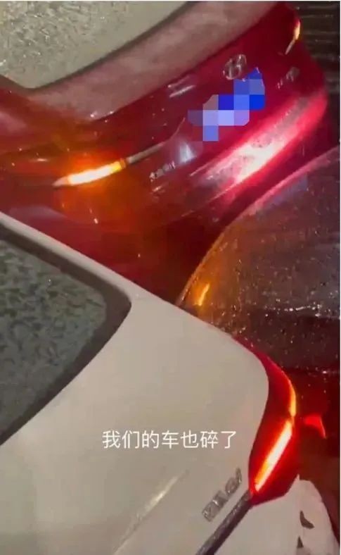 知情人士王女士介绍,22日晚11点45分左右,她老公驾车在时代高架临近亚太路出口位置,看到前方大约七八十米左右,有车辆发生事故,于是踩下刹车,结果因为路面太滑,车子根本刹不住,“眼睁睁看着自己的车滑行过去撞上了前面的车”。