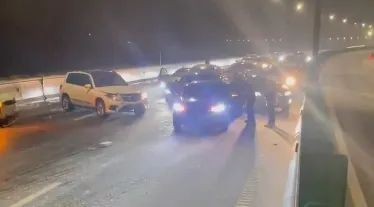 由于雨水结霜造成路面湿滑,今晨6时45分左右,G40长江大桥主桥面双向道路发生多起车辆碰擦交通事故。为确保施救安全,G40长江隧桥全段采取临时交通管制措施,双向禁止通行。在处置事故的同时,崇明交警支队会同路政部门立即采取除霜作业。截至上午9时,事故现场已清理完毕,道路恢复通行。警方提示,由于雨天路滑,目前,G40长江隧桥全段仍采取限速20km/h的措施,并由警车带道压速通行。