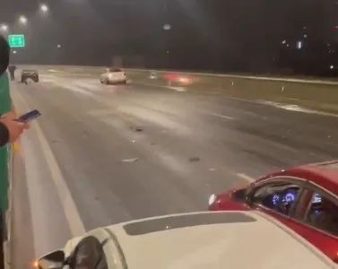 据都市快报报道,有网友报料,22日深夜,时代大道部分路段疑似路面结冰,多辆小车发生事故。