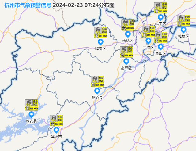 目前,杭州多区道路结冰黄色预警高挂。