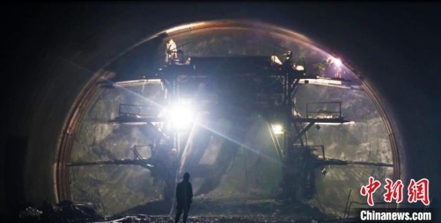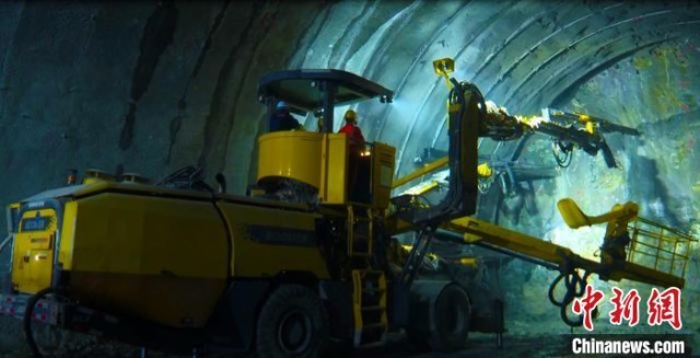 新疆天山隧道采用“三洞+四竖井”施工法,即左右双主洞采用钻爆法施工,中间的中导洞采用创新的“TBM硬岩掘进机”对向掘进施工,实现“长隧短打”大幅缩短施工工期。(依力达尔·依明 摄)