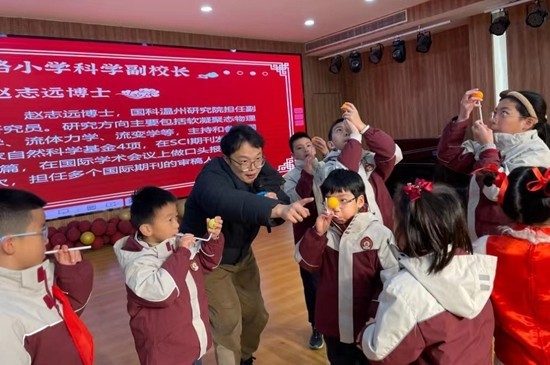 2月26日,中国科学院大学温州研究院副研究员赵志远博士来到温州广场路小学,上了开学第一课——科学课。受访者供图