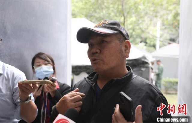 4月4日下午,因强震受困于花莲太鲁阁台8线中横公路隧道内的30多名晶英酒店员工,陆续获救。图为酒店安全部经理陈卫华。中新社记者 杨程晨 摄