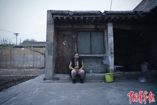 4月17日,山西代县,父亲去世后,张宏英在老家的院子里陪伴母亲。