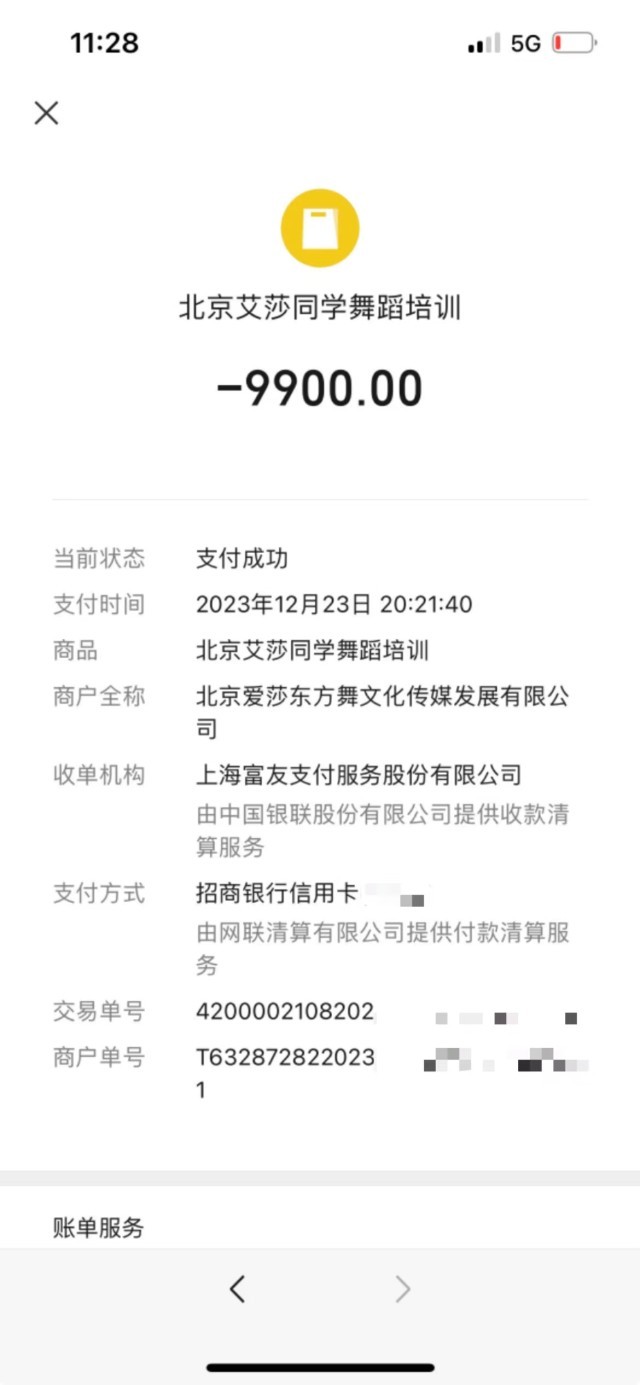近日,来自北京的姚先生向澎湃质量观投诉平台反映,他去年花9900元在北京艾莎同学方庄店给孩子报名少儿舞蹈课程,一节课都没上,今年5月27日北京艾莎同学方庄店宣布闭店。