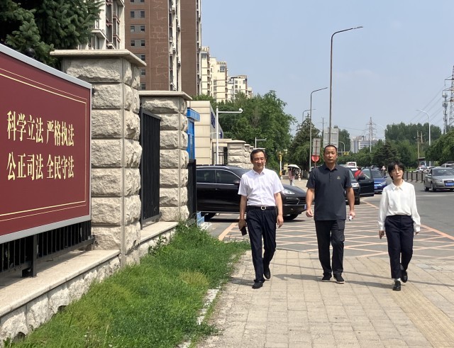 庭审结束后,刘雪峰(中)和其再审辩护律师高文龙、杨岚走出吉林高院。