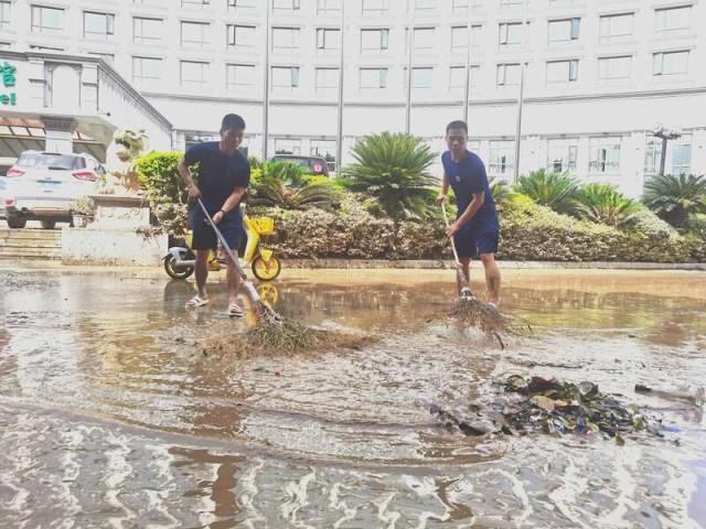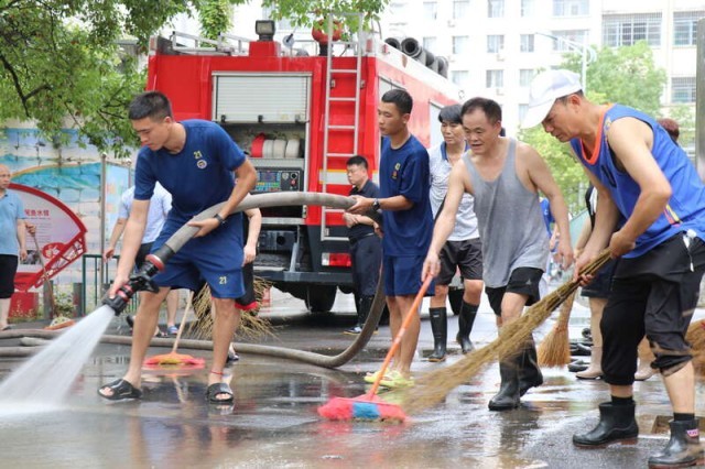 在桂林宾馆,消防队员利用排水抢险车对地下室内积水进行抽取。在七星区漓江磨盘山码头客运港,消防队员利用消防水枪对路面进行冲洗。在全市各受灾区域,消防队员拿起水枪、扫帚、铁锹等工具对被淹路段道路进行清扫疏通,帮助受灾区域恢复生活秩序。
