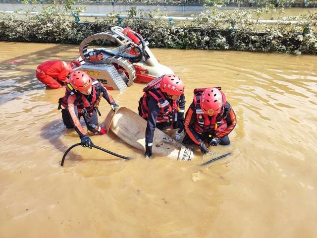 “上海路路 段积水严重,我们从昨天20日晚间就开始投入到排水工作中。”秀峰区特勤站一名消防队员告诉记者。由于淤泥堆积较多,造成地下部分路段积水深达50厘米,这给清淤工作带来极大困难,消防队员利用消防机器人、龙吸水排水抢险车等进行持续排涝作业。