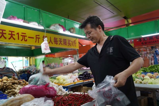 兴海湾市场位于深圳南山区前海路,陈俊杰租了一个35平方米的蔬菜档,档位费每月约1.5万元,“我没手艺,对其他行业也不熟,只能守住这个菜摊。”