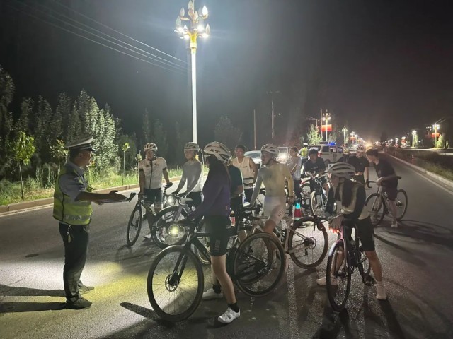 库车市公安局交通管理大队通过定点执勤+流动巡逻的方式,加强对城区周边机动车道、非机动车道和重要路口的巡逻力度,对“暴骑团”违法违规行为及时进行制止和处罚,同时加强对骑行爱好者的道路交通安全教育,引导其选择合适路线,夜间骑行时要注意在自行车尾部粘贴反光贴,坚决杜绝竞速追逐、闯红灯、非法占用机动车道等违法行为。