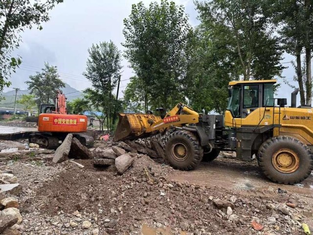 8月23日2时40分,中国安能沈阳救援队紧急抽调110名抢险人员,49台(套)装备,从沈阳赶赴建昌县进行道路抢通任务。8月23日10时许,这支救援队抵达指定现场后,通过对地形人员侦测,科学研判后,决定采取“抛料回填,快速抢通,疏填结合”的战法,在位于建昌县南部的养马甸子乡投入4台挖掘机、5台装载机车,在树湾子乡、大屯镇、黑山科乡、雷家店乡4个乡镇投入4台挖掘机、4台装载机车。