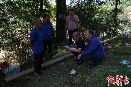 8月25日,湖南资兴,燕窝村坳下组正在统计住房受灾情况。
