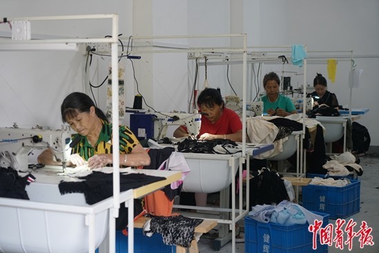 8月24日,湖南资兴,州门司镇一家制衣厂受灾后在临时厂房里复工。