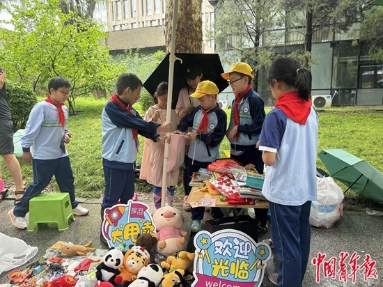 家住青年湖公园附近的李梓涵把自己看过的旧书以远低于市场价的价格全部卖出,“这些书都是我看过的,放在家里也没用,不如拿出来让书本继续‘漂流’。”北京市第一七一中学附属青年湖小学的学生马艺朗,把自己收集的整整一本卡册卖给了另一个小摊主,虽然妈妈在旁边大喊“亏了亏了”,但依旧挡不住孩子们开心。