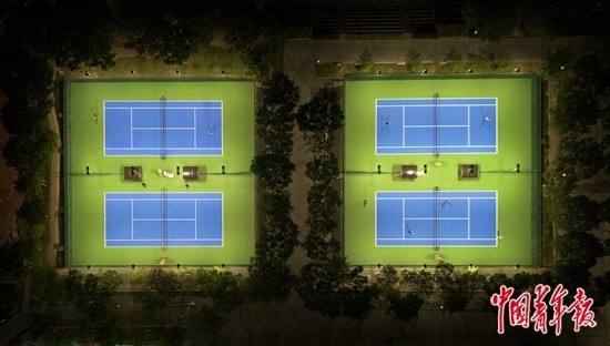 此后,在当地财政支持下,建在单位和社区里的公共网球场越来越多。在现今文峰公园沙土球场的不远处,是十几块崭新的标准塑胶网球场,白天打球免费,早8点前和晚上需要灯光的时段则仅需20元一小时,从市政小程序就能预约。