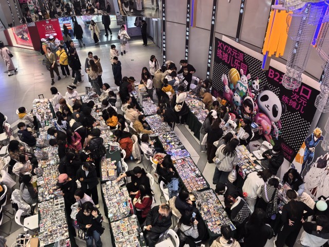 “快看,这边有好多‘谷子’,太过瘾了!”周六下午,14岁的初中生小希一到王府井附近的购物中心,就拉着同伴直奔地下二层的“谷子店”。中庭的XY次元派练摊儿乐园,数十个摊位依次排开。熙熙攘攘的人群中,有不少像小希一样的中小学生,正仔细挑选自己喜欢的“谷子”。