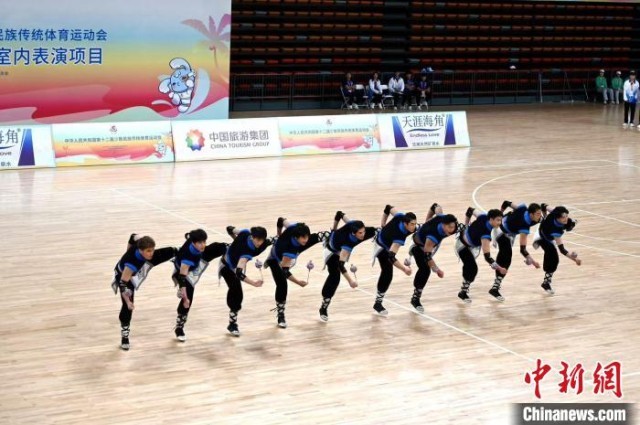 11月23日,海南三亚,《羌铃赛》亮相第十二届全国少数民族传统体育运动会。王利文 摄