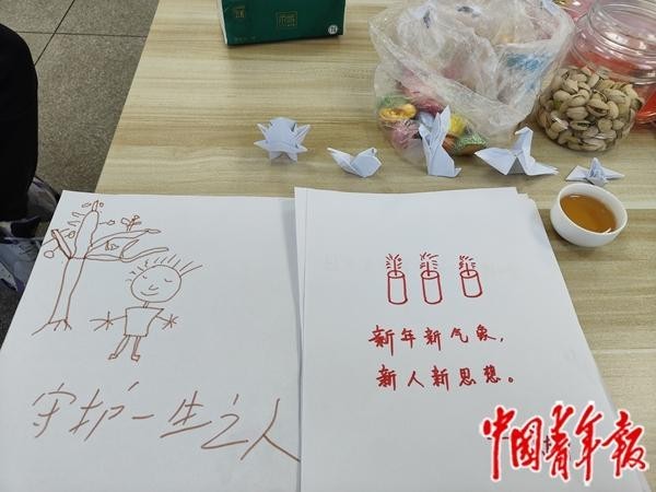 住院患者写写画画,表达新年期许。中青报·中青网见习记者 李怡蒙/摄