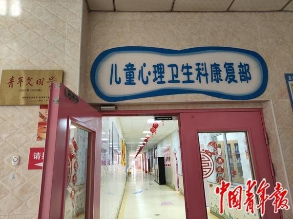1月20日下午,中青报·中青网记者跟随负责儿童孤独症诊断和干预的安溪三院儿童心理卫生科康复部主任苏育华走进康复部。墙上的文化栏布置着手工剪贴“欢欢喜喜迎新年”,家长在门口张望着。