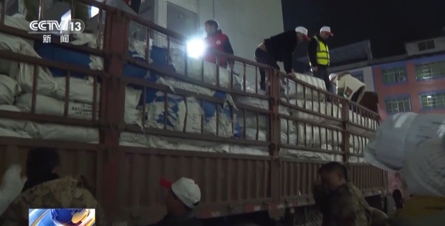总台记者 白璐:9日凌晨1点多,我们看到又有一批救灾物资抵达了筠连二中,这批物资主要是救灾帐篷和棉絮。
