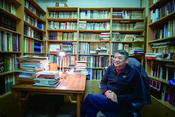 经过20多年的涓滴以汇,北京大学中国古代史研究中心暨历史学系教授罗新的藏书,已经超过1万册。朗润园的书斋只是冰山一角,3面书墙环绕两张桌案,书架的每一格都叠着内外两层书。古代汉籍、内亚文献、中亚史书、突厥语词典,还有大量的文学作品,多为旅行纪实,透露出主人的专业和偏好。