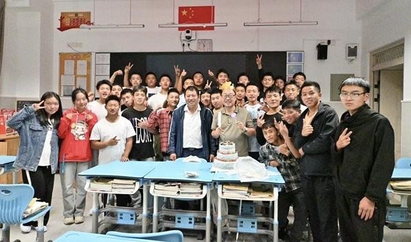 2023年10月,班上学生为徐剑军庆祝生日。受访者供图