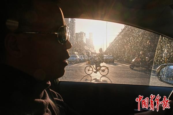 4月2日傍晚,北京市朝阳区,上门护士康玲的丈夫载着妻子去往下一个客户家。