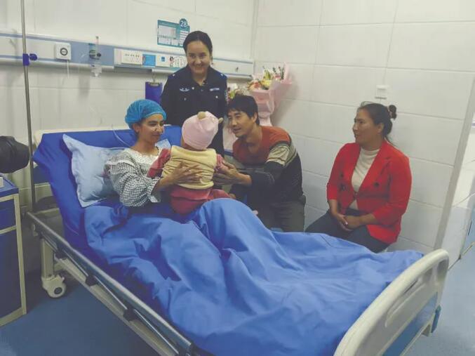4月17日,获救幼童在父母的陪伴下到病房看望布帕太姆·阿布杜喀迪尔。李远明摄