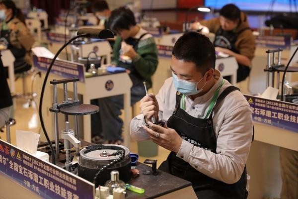 一粒粒原石,经他的精心琢磨,最终变为一颗颗璀璨的宝石。凭借对珠宝技艺的热爱和坚持,他一次次捧回国家级技能赛事的金奖,并在今年4月获评“全国轻工技术能手”;如今,成为青年教师的他又将这份匠心传递给更多学子,一同逐梦珠宝技艺之路。