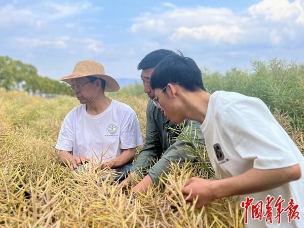 2025年4月,云南,张福锁院士(左一)和科技小院老师同学在油菜田勘查。中青报·中青网记者 张茜/摄