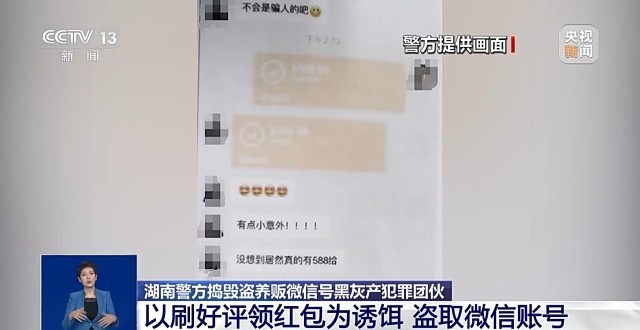 警方查明,该团伙犯罪嫌疑人主要瞄准未成年人,以做任务领取红包为诱饵,盗取微信账号,并将这些账号高价出售给上线,用于违法犯罪活动。