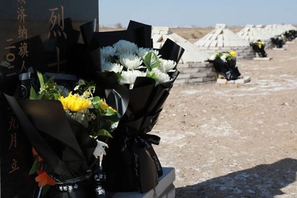 2025年清明节,额济纳旗人民检察院组织祭拜冯英林及其他13座无名墓。受访者供图