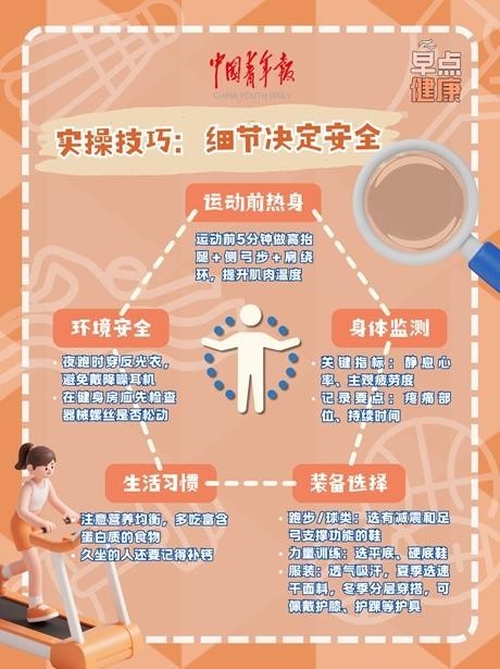 张乐伟提醒,长期不运动的人开始锻炼时,“低强度、高频率、慢进阶”是关键。投入时间做好身体评估、装备选择和计划制定,能避免80%以上的运动损伤。