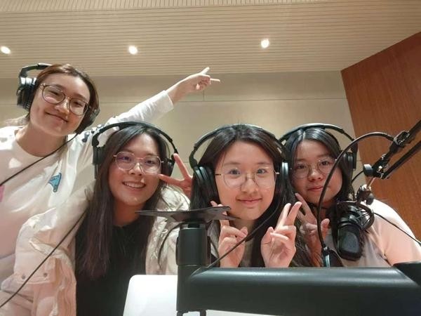 4月3日,进行配音工作的学生合影留念。林予诺供图