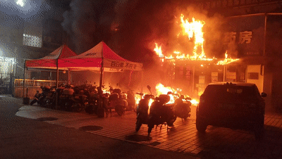 一电动自行车店铺着火
