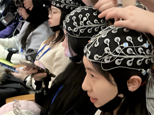 演出前,团队招募了覆盖文、理、工科等不同专业背景的志愿者。工作人员提前为他们调试了设备,并在演出时同步采集多人脑电。“我们使用的设备均通过安全认证,仅用于无创数据采集,对志愿者的健康不会有任何影响,佩戴起来也比较舒适。所有数据也会匿名处理,确保隐私安全。”
