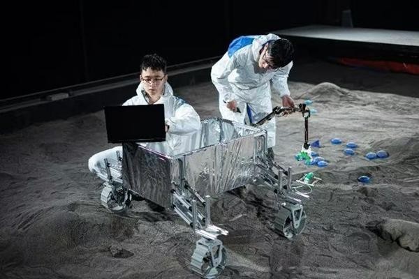 团队在模拟月面调试样机机械臂。西北工业大学供图