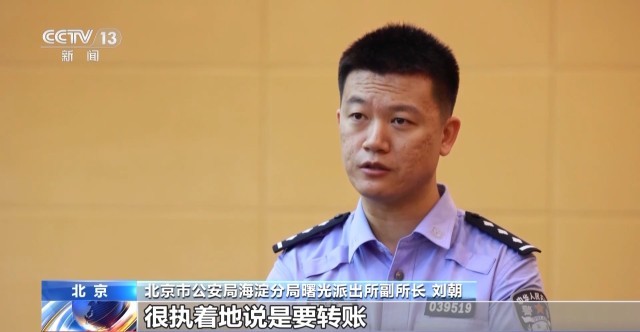 北京市公安局海淀分局曙光派出所副所长 刘朝:民警出警以后,发现这个阿姨确实说的前言不搭后语,很多问题跟实际情况对不上。阿姨在现场跟民警说,这个钱是要借给别人的孩子结婚用,很执着地说要转账,而且她说这个朋友是通过抖音认识的,不是现实认识的朋友。