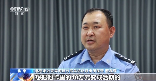 北京市公安局海淀分局羊坊店派出所民警 薛友辉:在进一步的询问过程中,他自己说想把他卡里的40万元变成活期的,然后看病用。