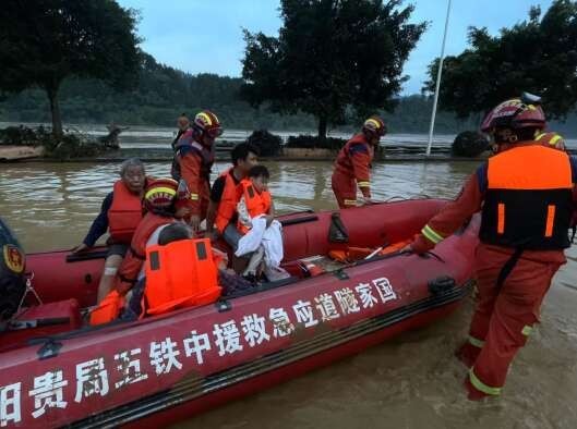 中国青年报客户端讯(付艳平 中青报·中青网记者 宋宝颖)受持续强降雨及上游来水叠加影响,贵州省榕江县遭60年一遇洪水。6月24日7时,国家隧道应急救援中铁五局贵阳队作为国家级专业救援队,在接到贵州省应急管理厅救援指令后,立即启动洪涝灾害应急救援预案,摩托化行进300余公里驰援榕江县抗洪救灾抢险救援,是第一批到达灾害现场的救援队伍。截至6月30日7时30分,已完成5个排涝作业点工作,总计排水59.59万立方米,转移被困群众103人,清淤面积18.33万平方米。