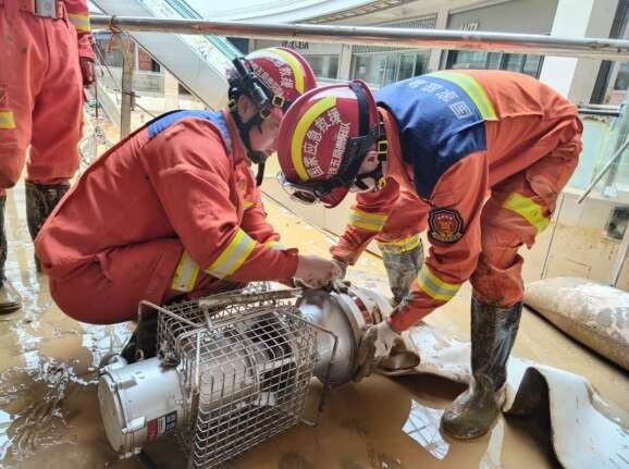 随着洪水逐渐消退,隧道救援贵阳队立即转入排涝救援作业,使用多台大流量排水抢险(排水量每小时总计12000立方米)在滨江花园居民小区、府前公馆居民小区、海棠铭悦居民小区、常驰广场商场等5个洪涝严重区域开展排水作业。