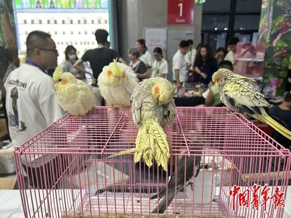 众多鸟类聚集在亚宠展上。中青报·中青网记者 魏其濛/摄