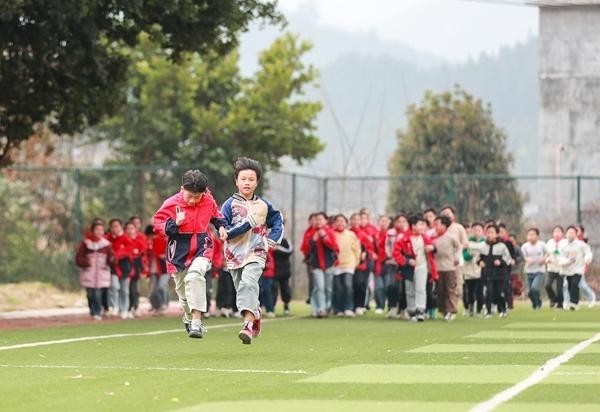 3月3日,贵州省从江县刚边壮族乡中心小学的学生在体育课上参加“快乐跑”。视觉中国供图