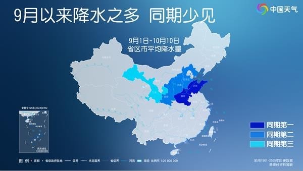 而到了秋季,副热带高压依旧偏强、偏北,这导致江南、华南等地即使进入10月,高温也十分频繁,多地频频刷新最晚高温日纪录。而副热带高压西侧、北侧的华西至华北、黄淮一带,冷暖气流频繁交汇,导致降雨偏多。