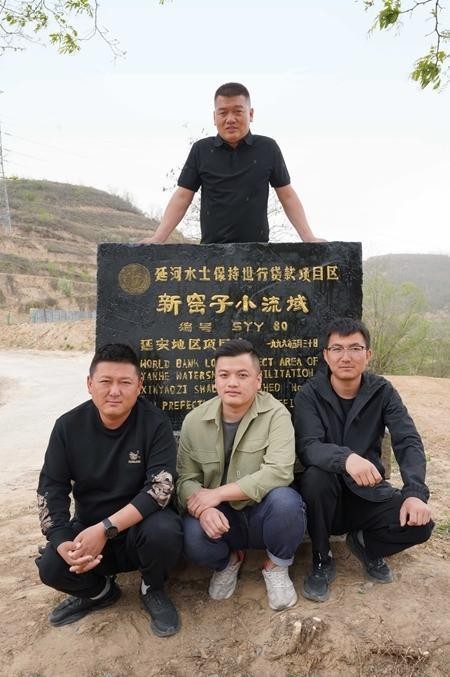 2025年4月30日,陕西延安新窑子村,高阳(上,1988年10月29日出生)、高旭(中,1990年6月3日出生)、高强(左,1990年2月4日出生)、高刚(右,1992年8月11日出生)四人在村里合影。高阳目前是新窑子村村委会主任。黑明/摄