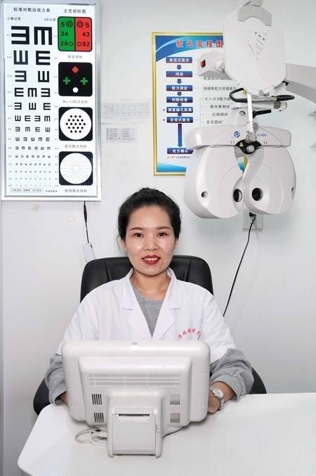 2025年5月31日,陕西延安一家眼镜店,高晶在工作岗位。她目前是眼镜店营业员。黑明/摄