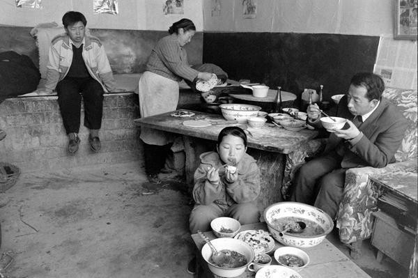 今年38岁的白莲花,是土生土长的新窑子村人,2006年毕业于延安师范学校,后来当过美术教师,现在已经搬到了延安市区居住。1998年黑明为他们全家拍过一张照片,当时就在老家的窑洞里,她正蹲在地上吃饭。“初识黑明时,我还是个天真无邪的孩子,如今我的女儿已经13岁。”白莲花说,“小时候尽管粗茶淡饭,穷得叮当响,可大伙儿依然在马不停蹄地奔波着,坚强地与苦难进行斗争。在我看来,这段苦中作乐的日子竟是我最美好的童年。”