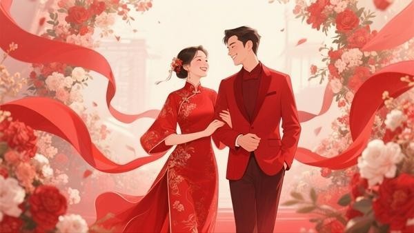 他们身穿心仪的中式吉服,既有神圣的证婚,也有至亲好友真诚的祝福。在掠过的镜头里,他们庄严宣誓、甜蜜相拥:“执子之手,与子偕老。”