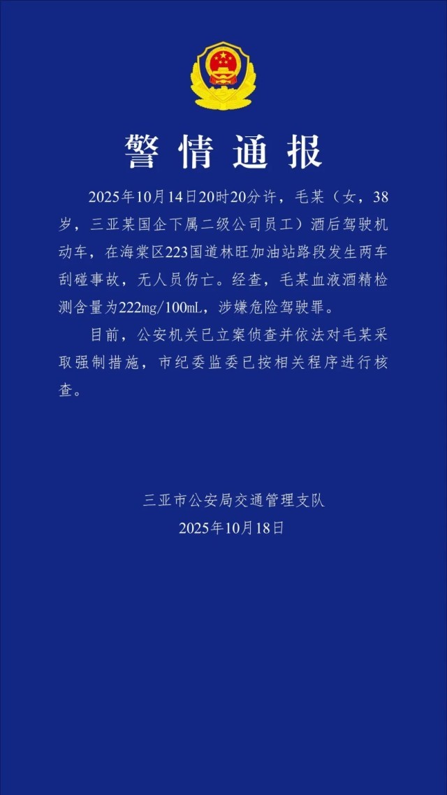 10月18日,三亚警方发布警情通报: