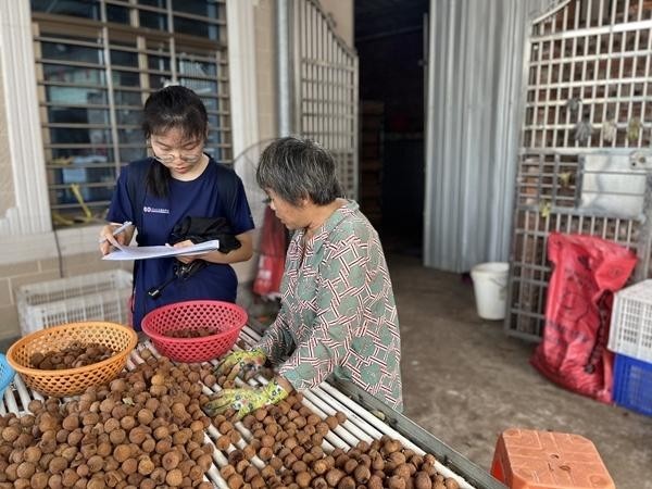 7月,中山大学岭南学院学生在广东省茂名市高州市调研,当地村民在荔枝选果、装箱时接受学生的访谈。受访者供图
